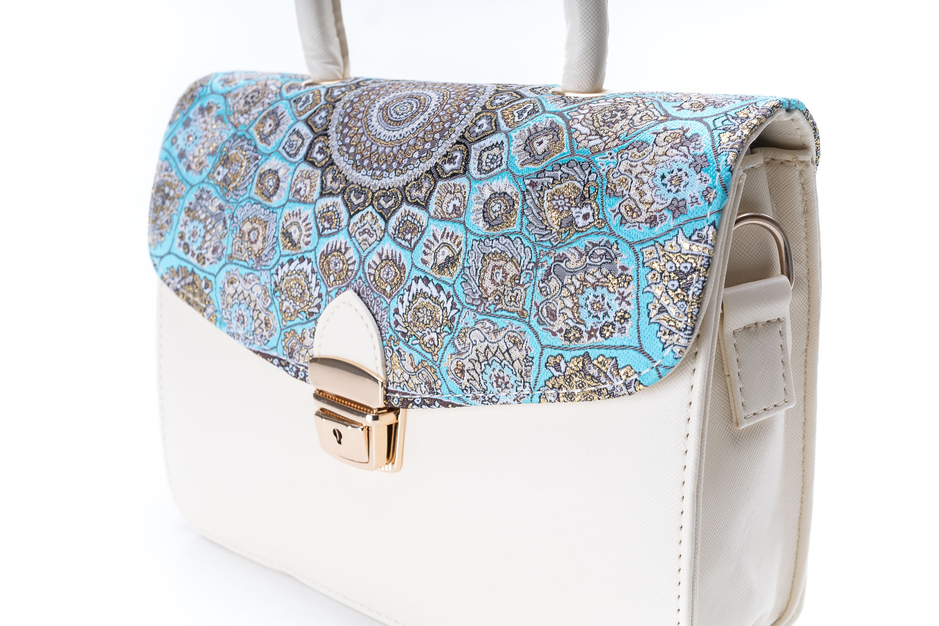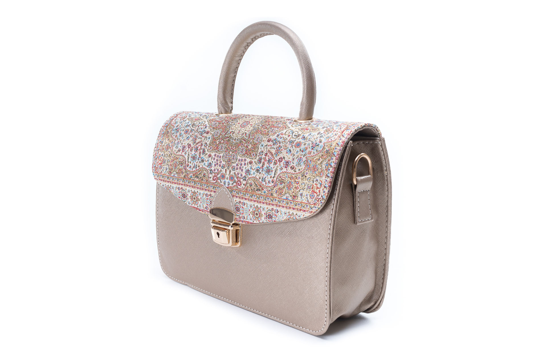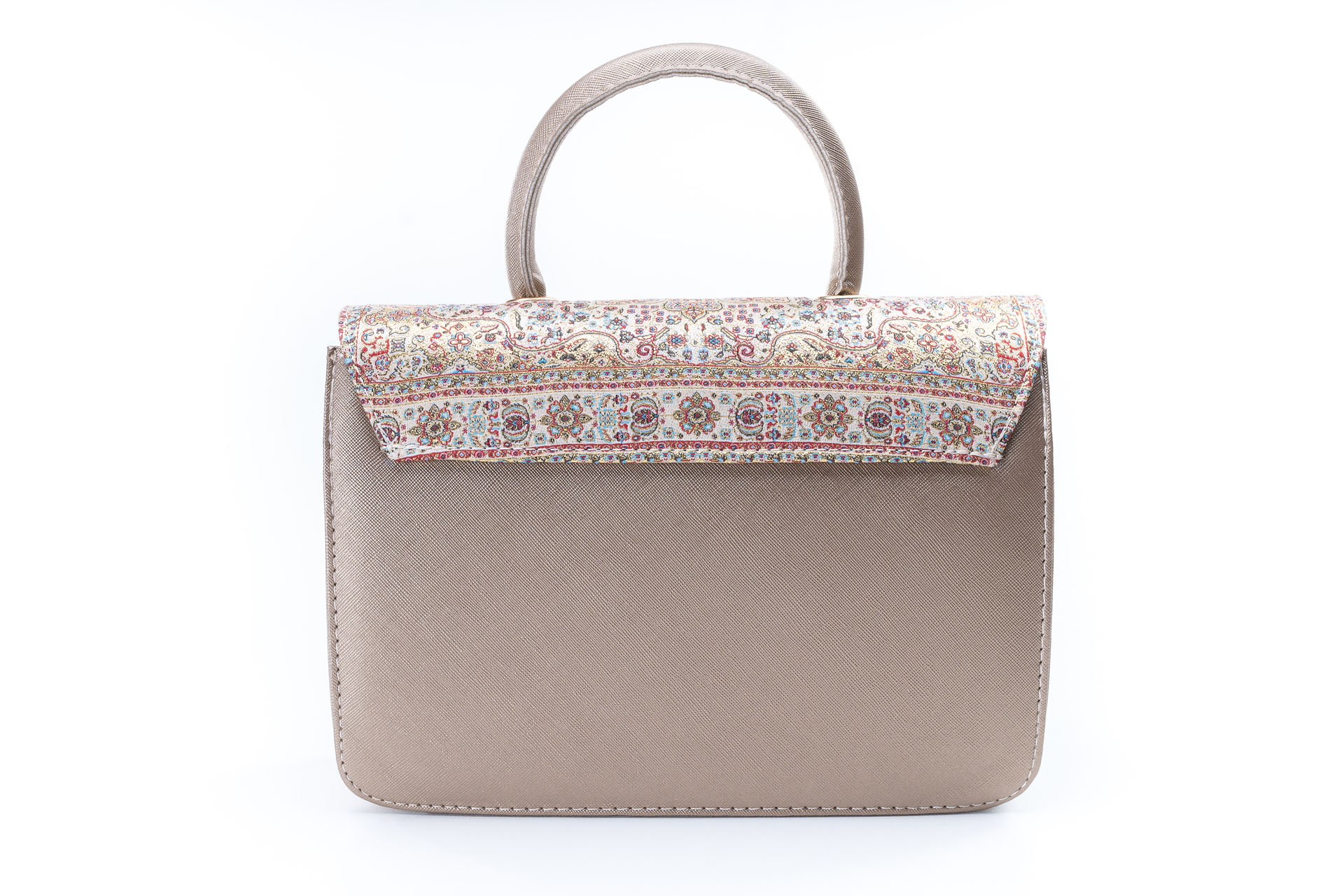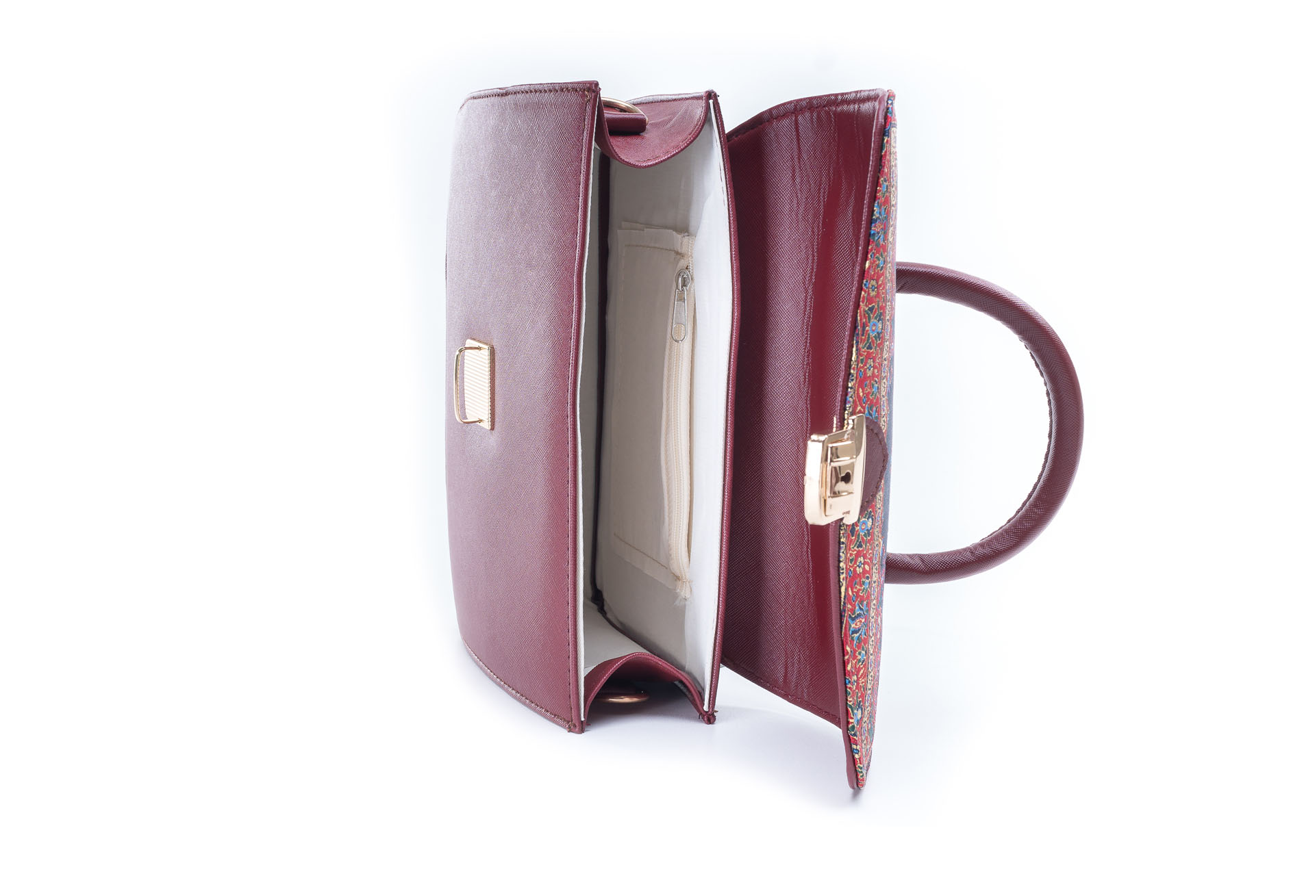 Özellikleri: Geçmeli kapak, dokuma simli, iç astar, süet deri, fermuarlı iç cep.