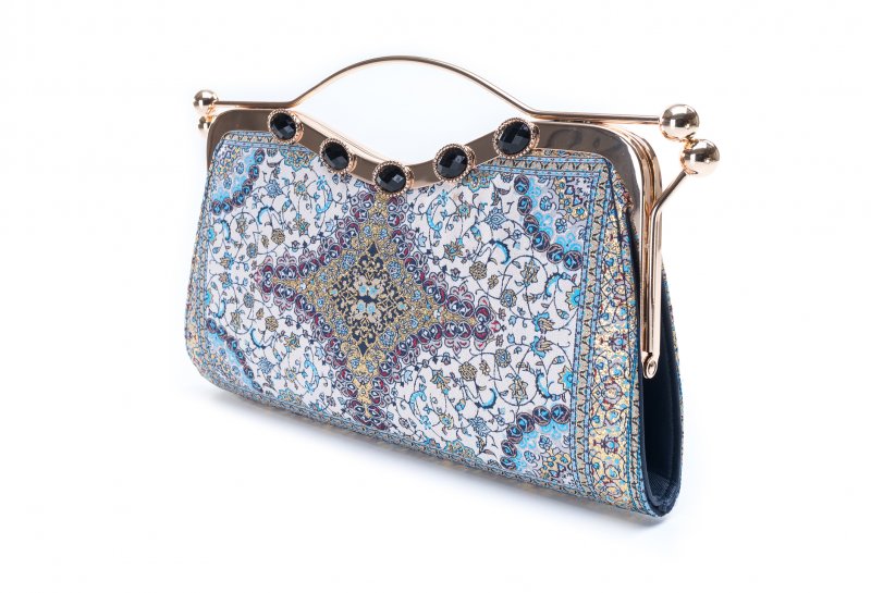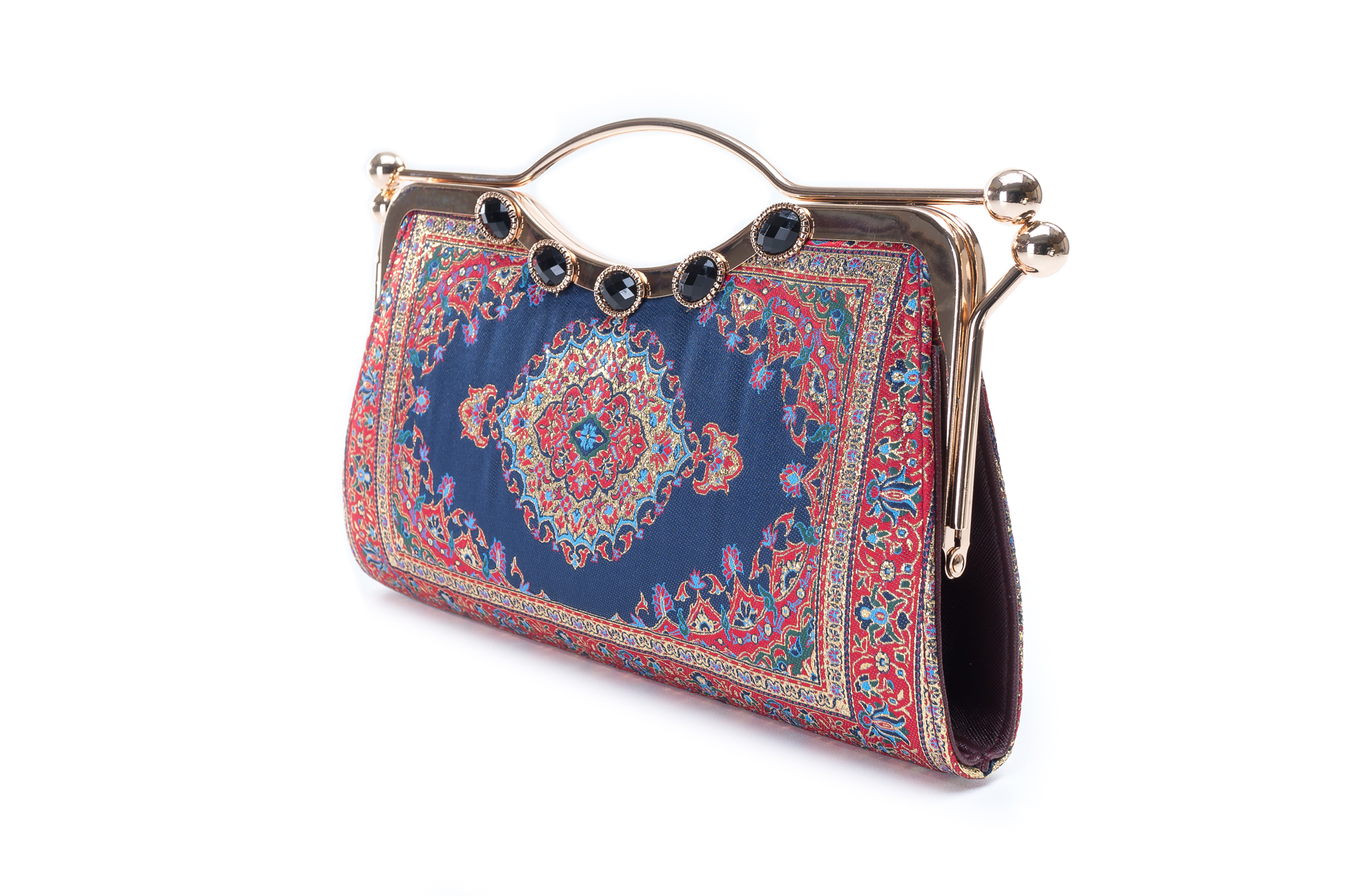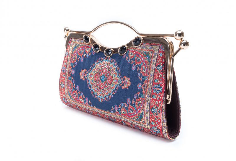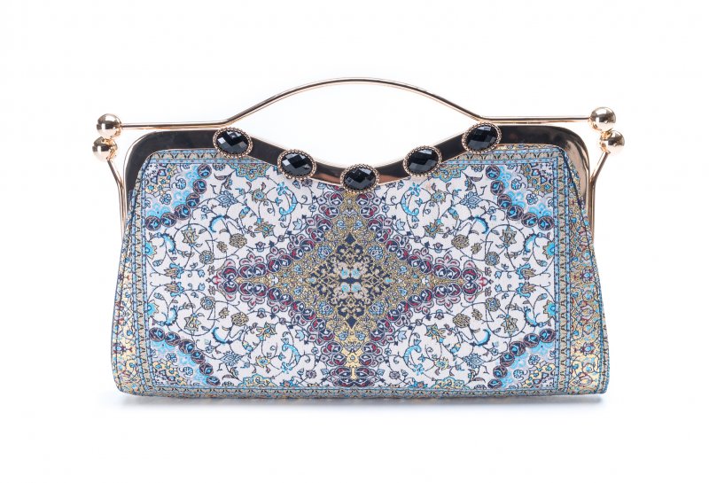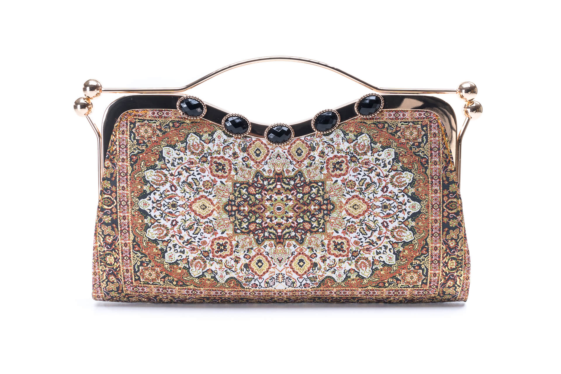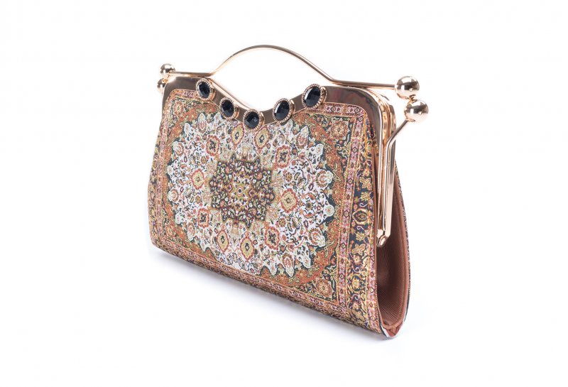 Özellikleri: Taşlı, topuzlu çıtlı kapak, dokuma simli, sarı yaldızlı iç astar, fermuarlı iç cep
