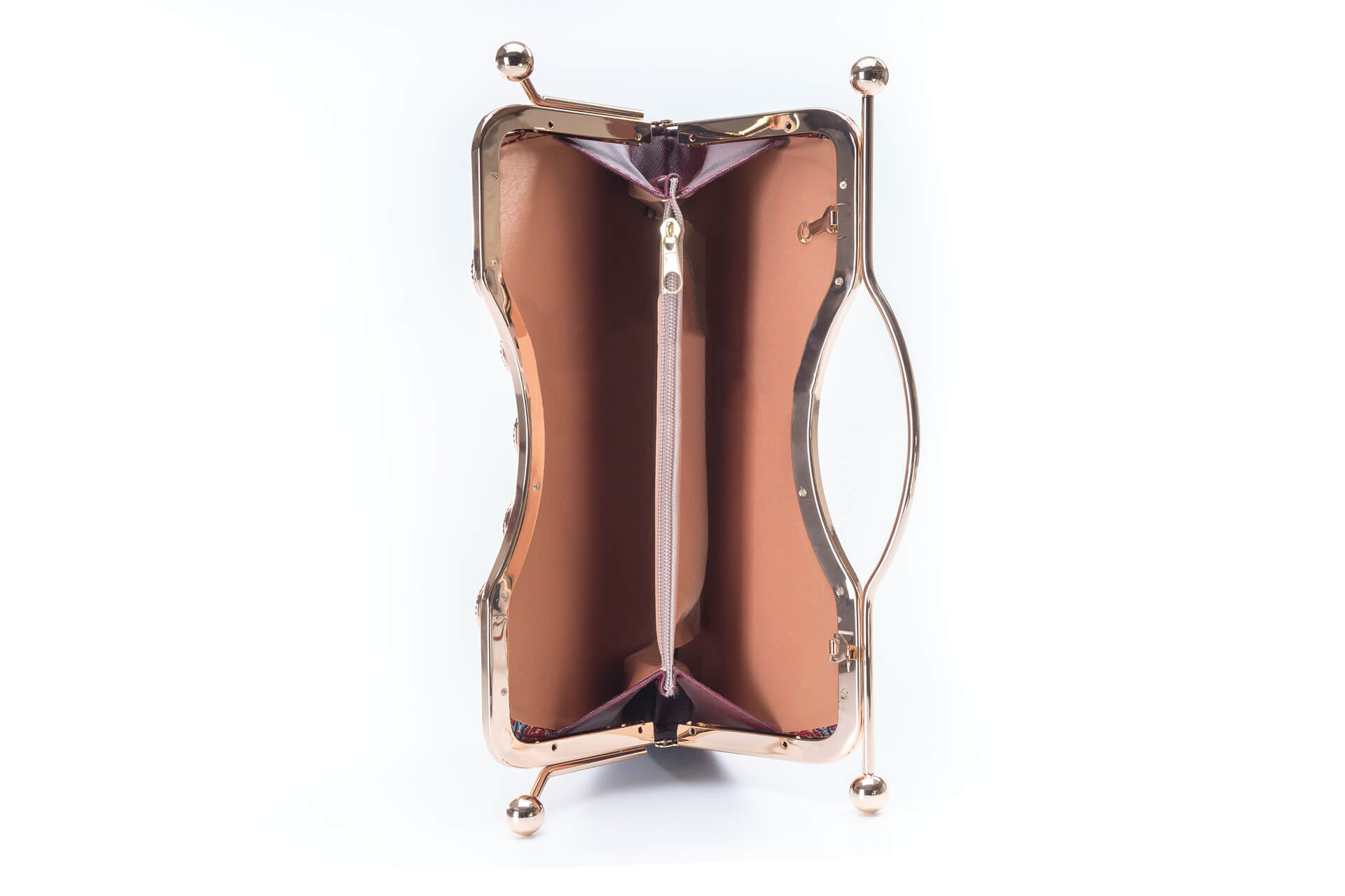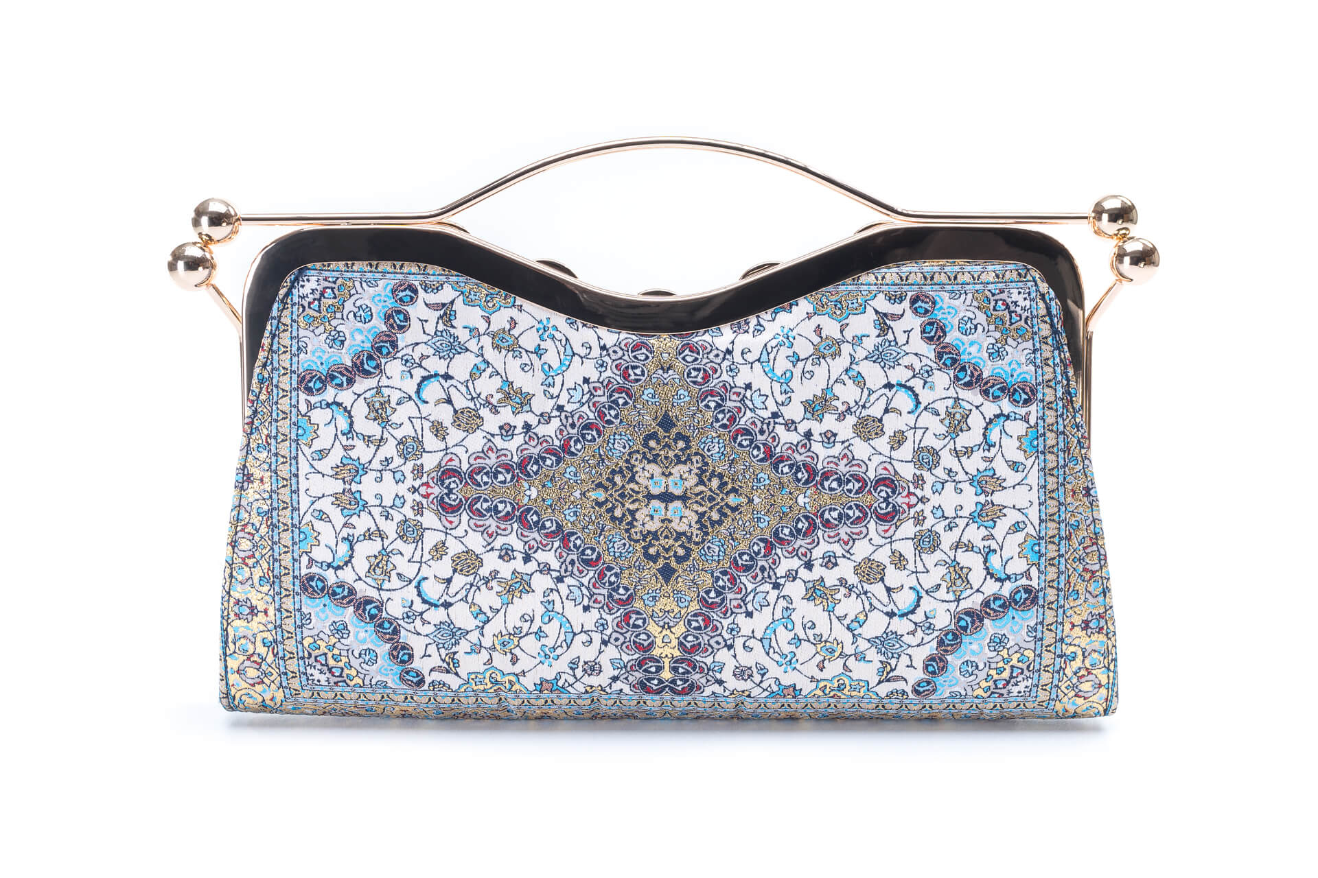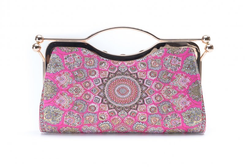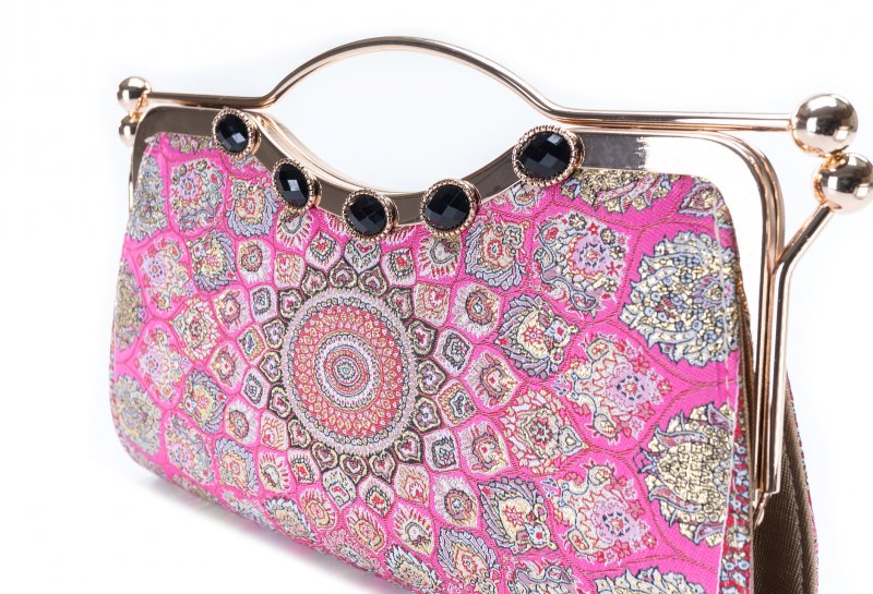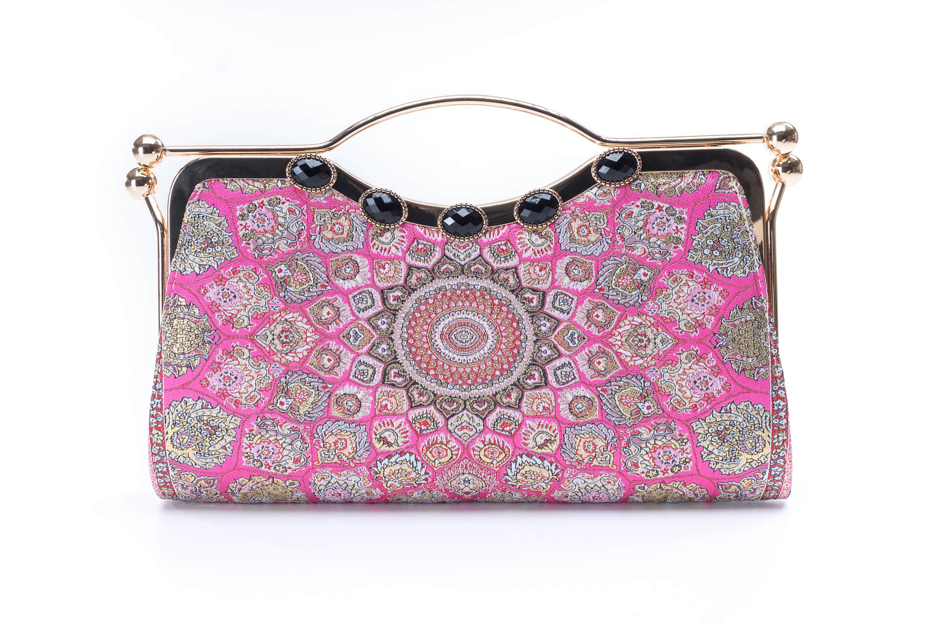 Özellikleri: Taşlı, topuzlu çıtlı kapak, dokuma simli, sarı yaldızlı iç astar, fermuarlı iç cep