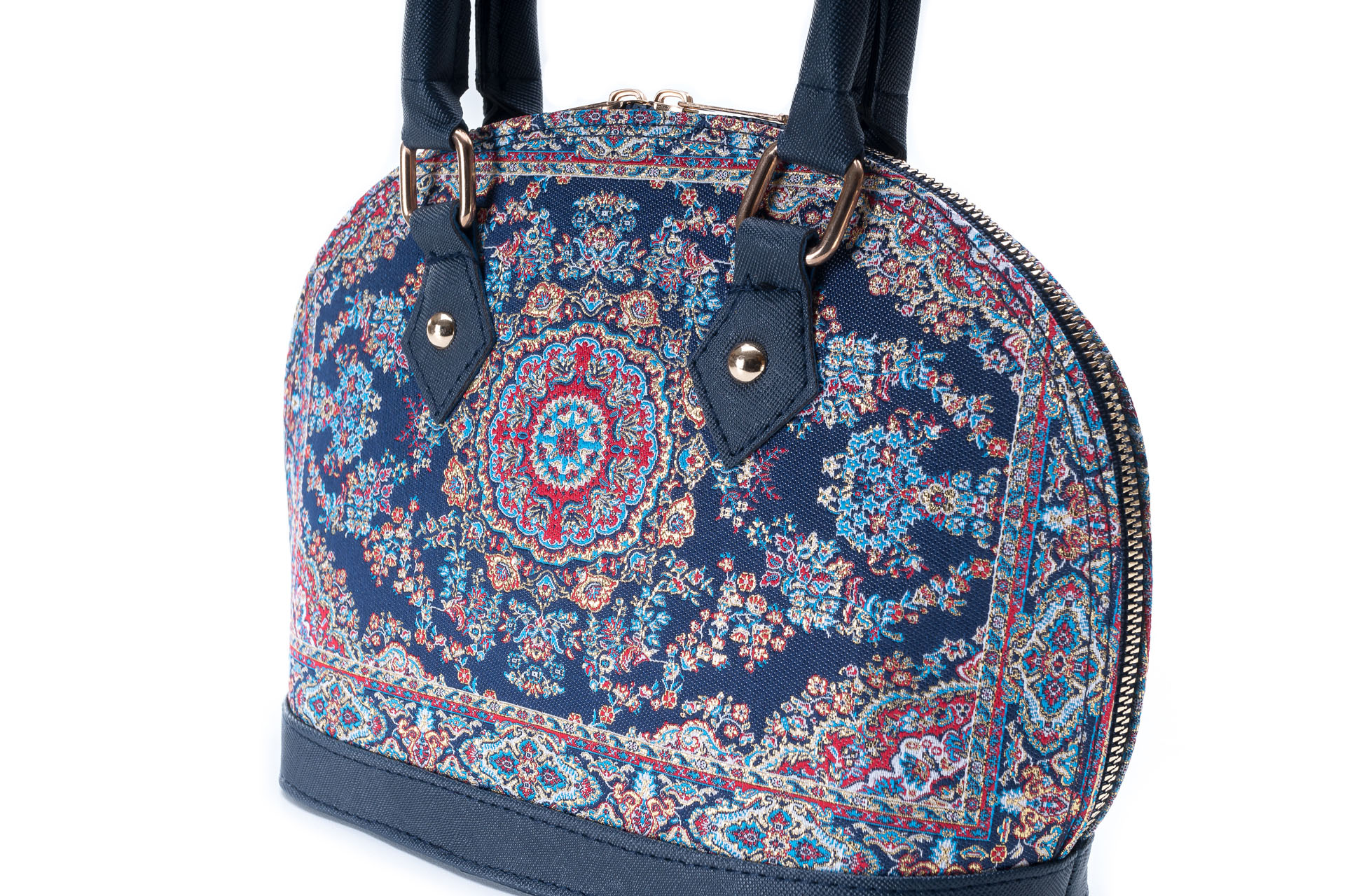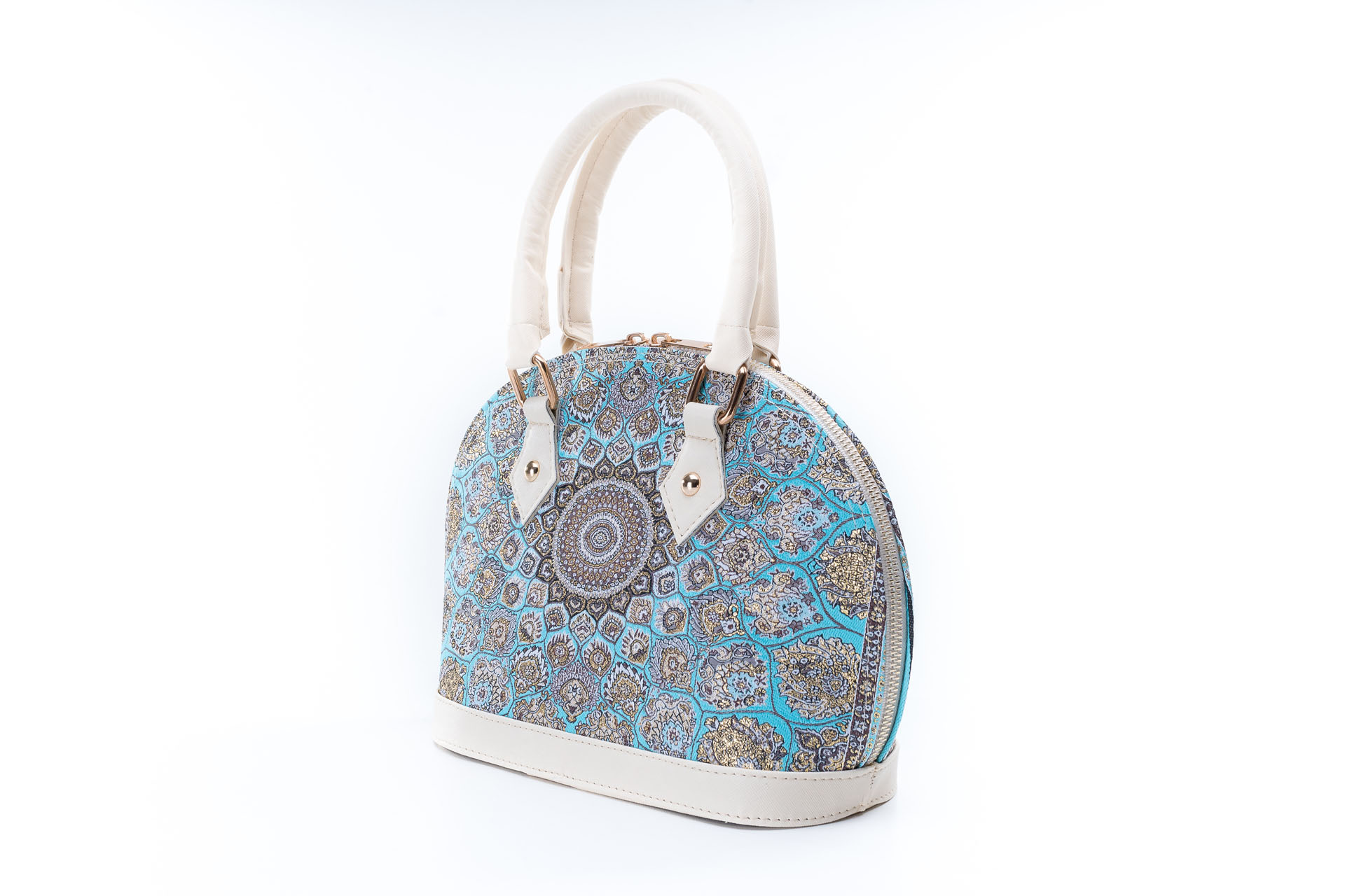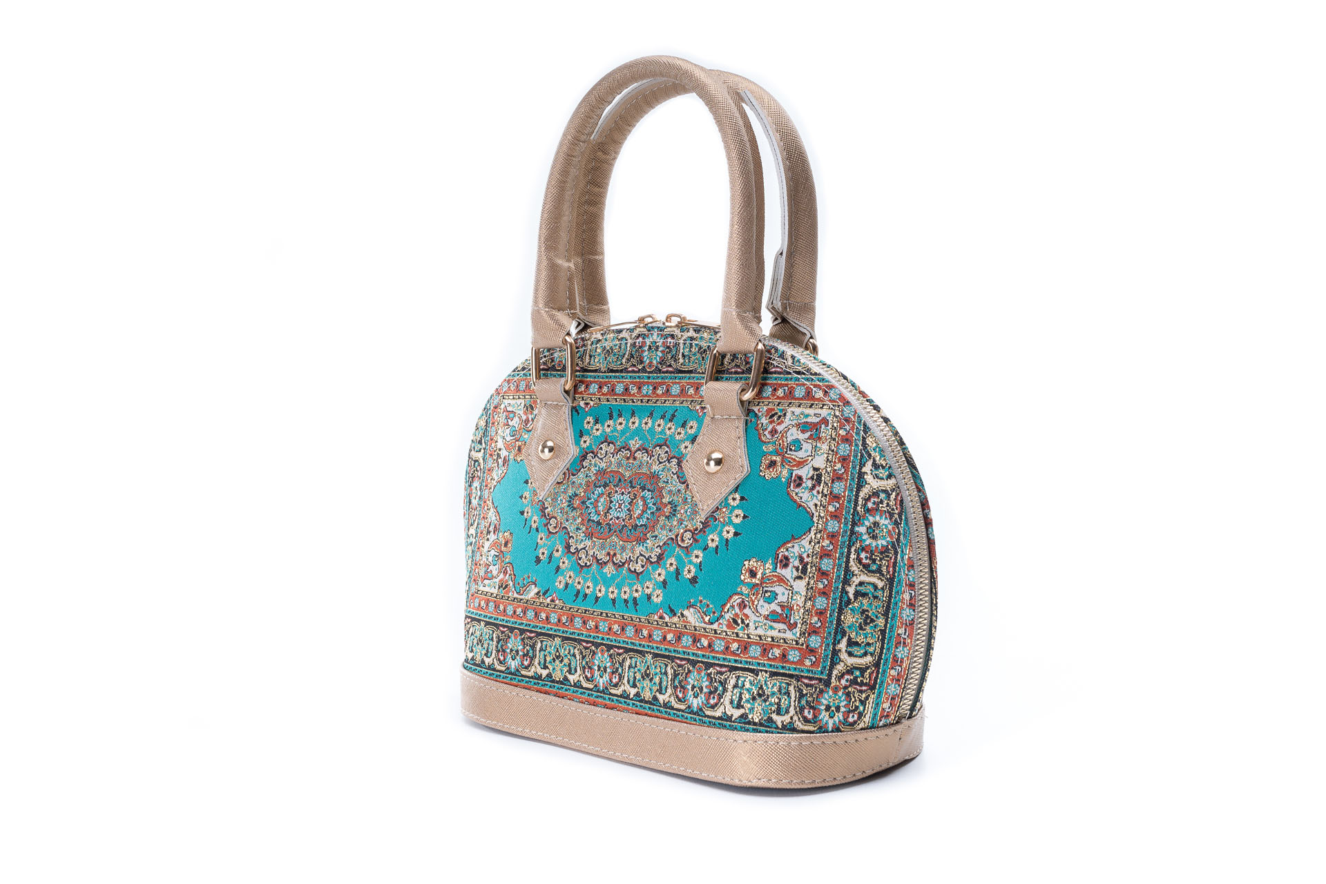 Özellikleri: Kulplu, çift fermuarlı kapak, dokuma simli, iç astar, süet deri, fermuarlı iç cep.
