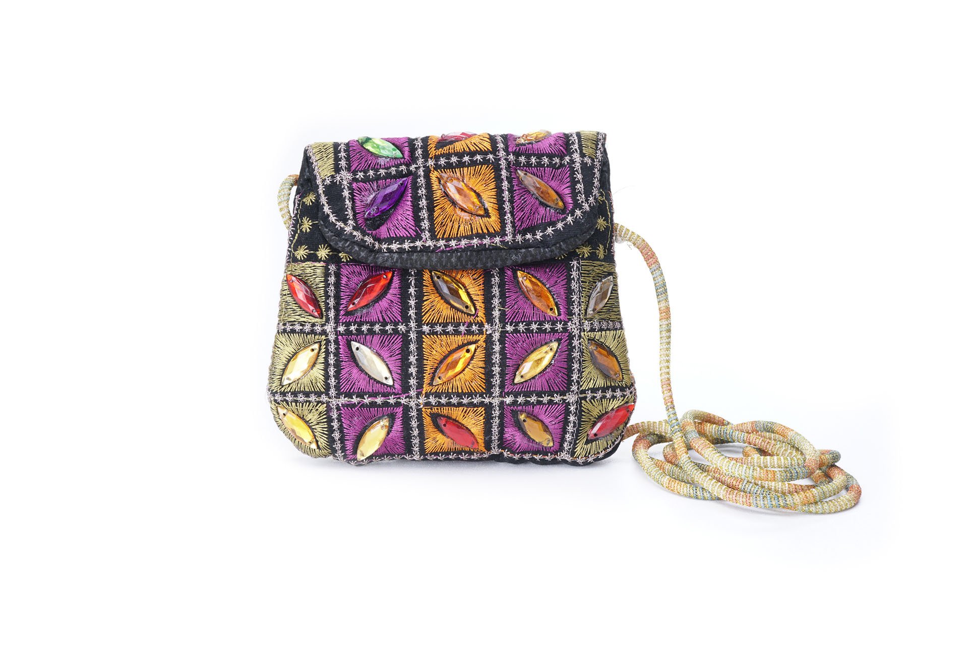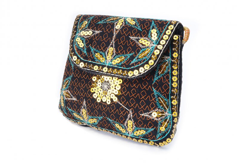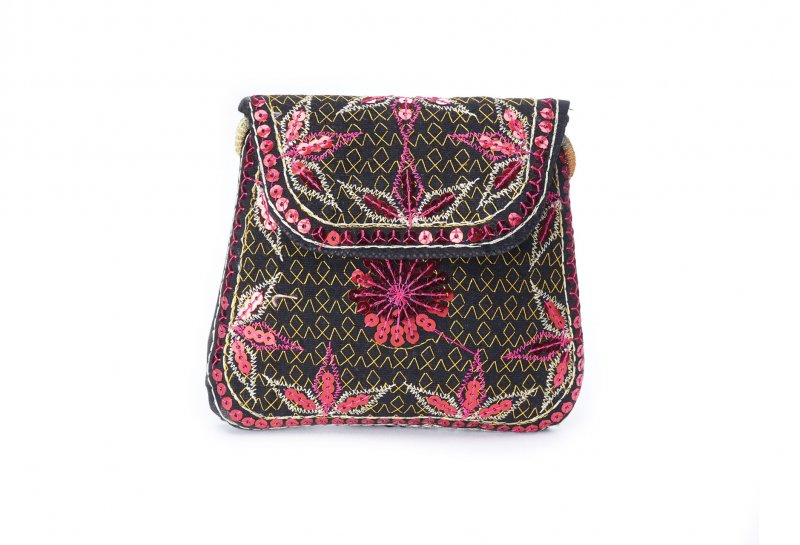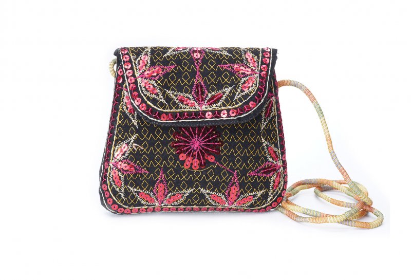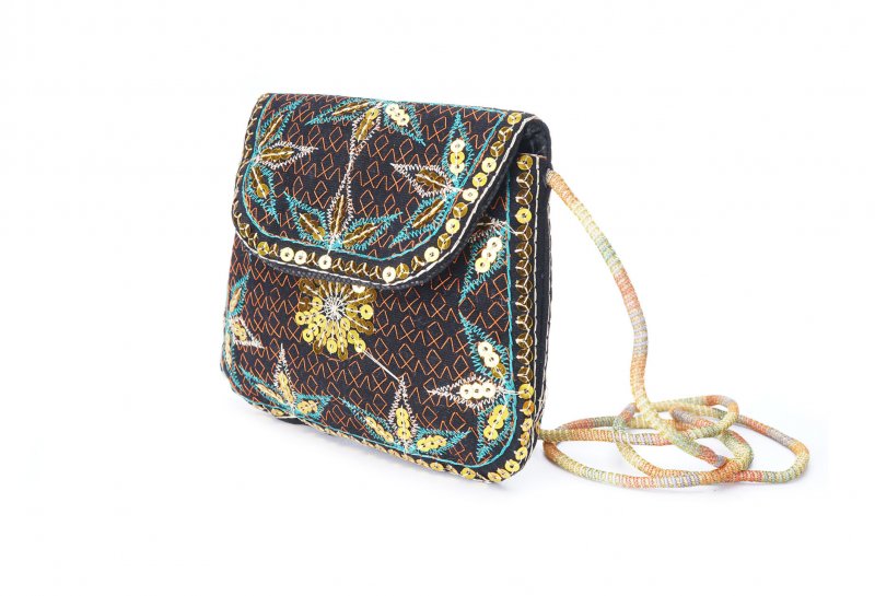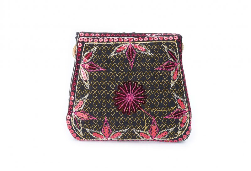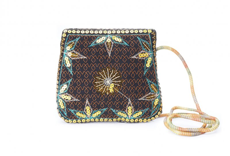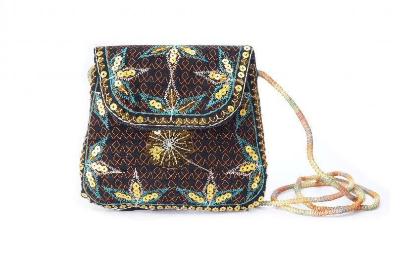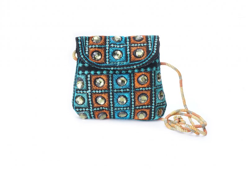 Özellikleri: Önde çıtçıt kapak, iç astarlı, ip askılı, renkli plastik boncuklu.