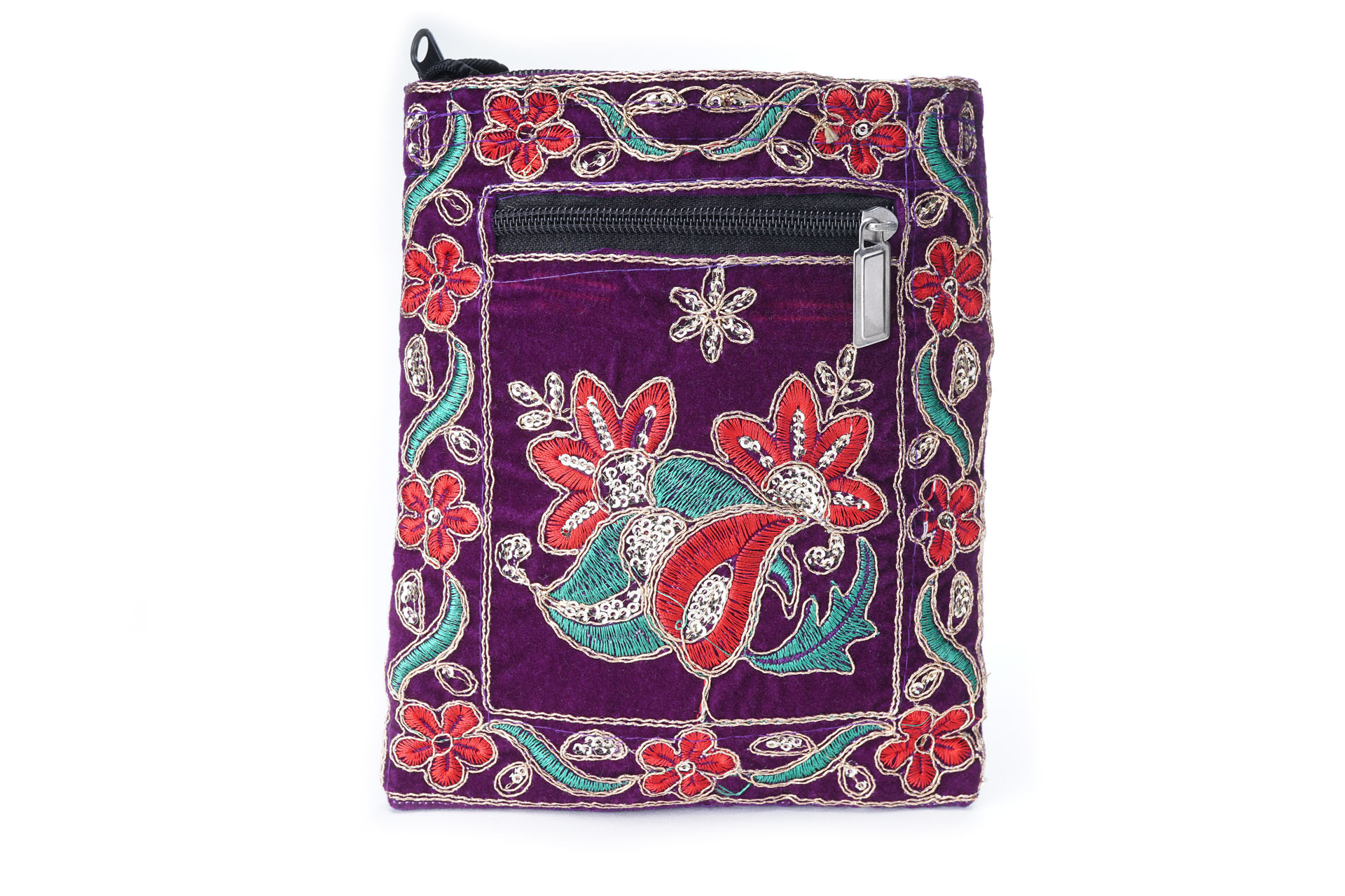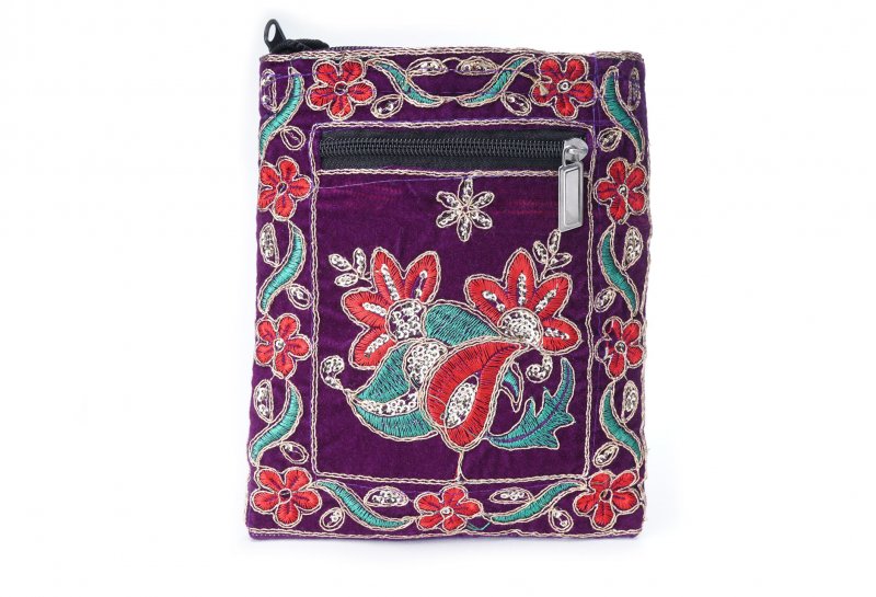 Özellikleri: Nakışlı, anahtarlık, arkada fermuarlı cep, iç astarlı, ip askılı